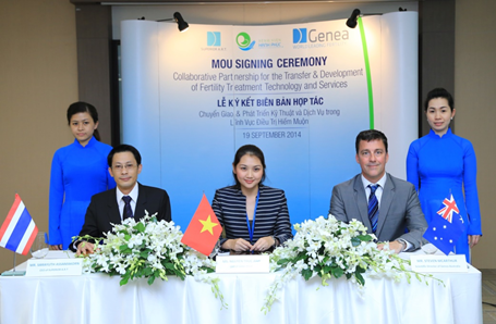 19 September 2014; Hanh Phuc – Hanh Phuc International Hospital,(HANH PHUC) the 1st Singapore Standard Hospital in Vietnam is proud to announce its collaborative partnership with Genea – a World Leading Fertility in Sydney, Australia through its appointed Joint Venture partner in Thailand Superior A.R.T. – a hi-tech assisted reproduction and genetics company in Bangkok, Thailand.