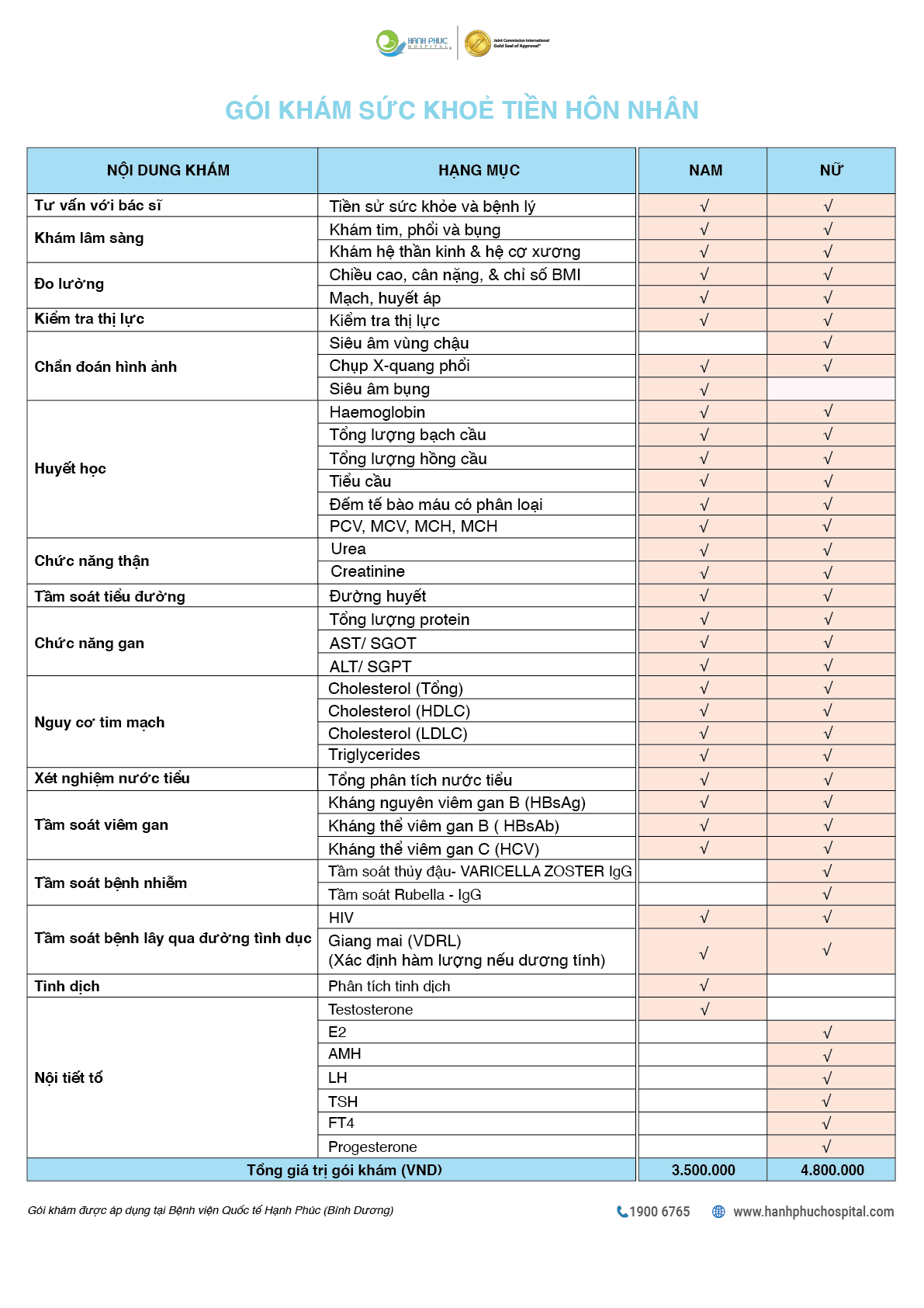 Marriage is the most important occasion in a person’s life and reproductive health is the key to Happiness. Hanh Phuc Hospital deploys a pre-marriage examination package to encourage couples to check their health before marriage: